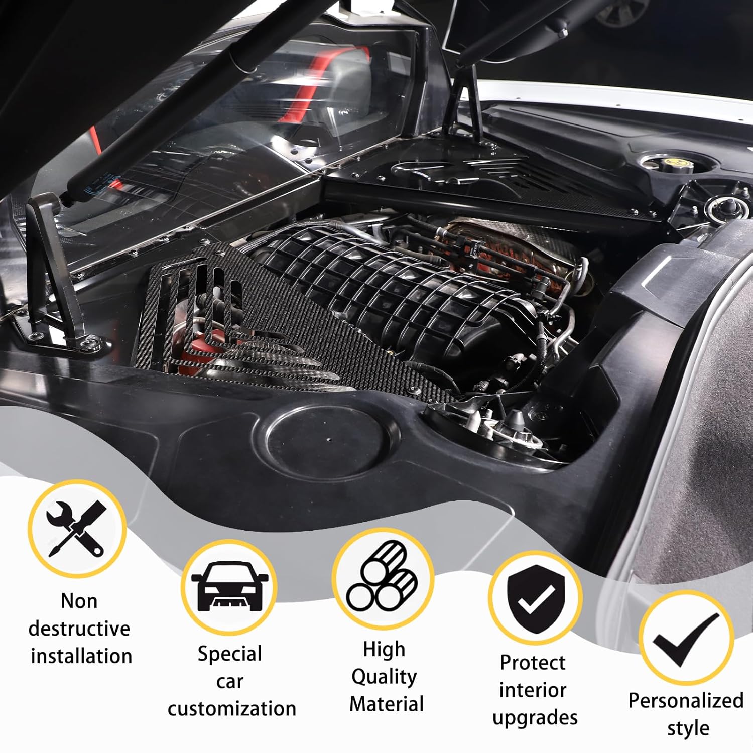 • 【Easy to install】This Engine Bay Panel Cover Rear Engine Covers are easy to install, this cover bolts on to existing hardware and takes 5 minutes to install.