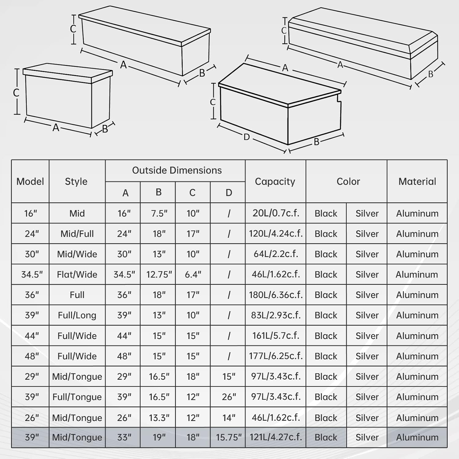 | Model | Aluminum Truck Bed Tool Box |