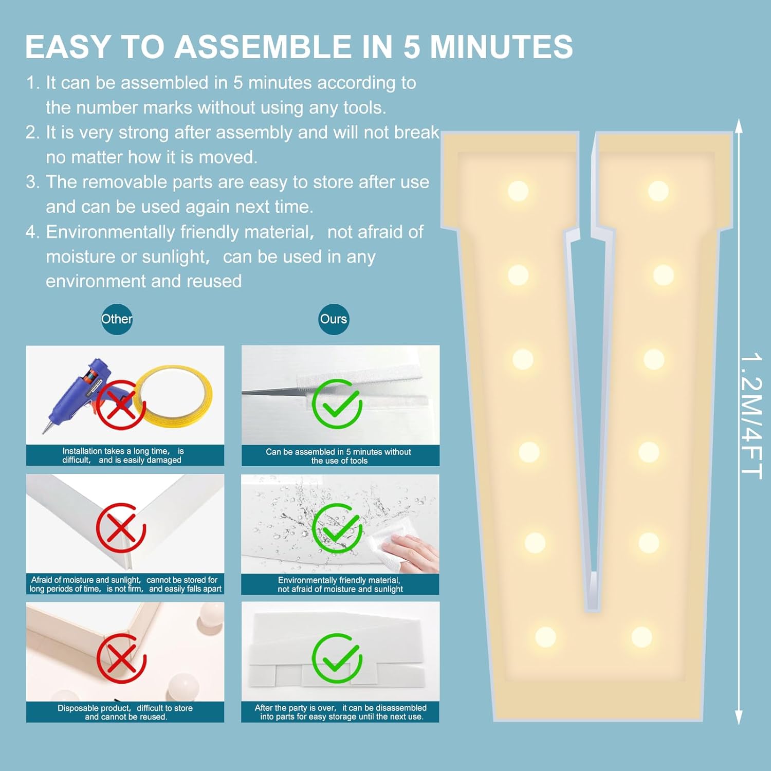 | Included Components | corrugated plastic board Marquee numbers, Velcro, 12 light bulbs, installation instructions |