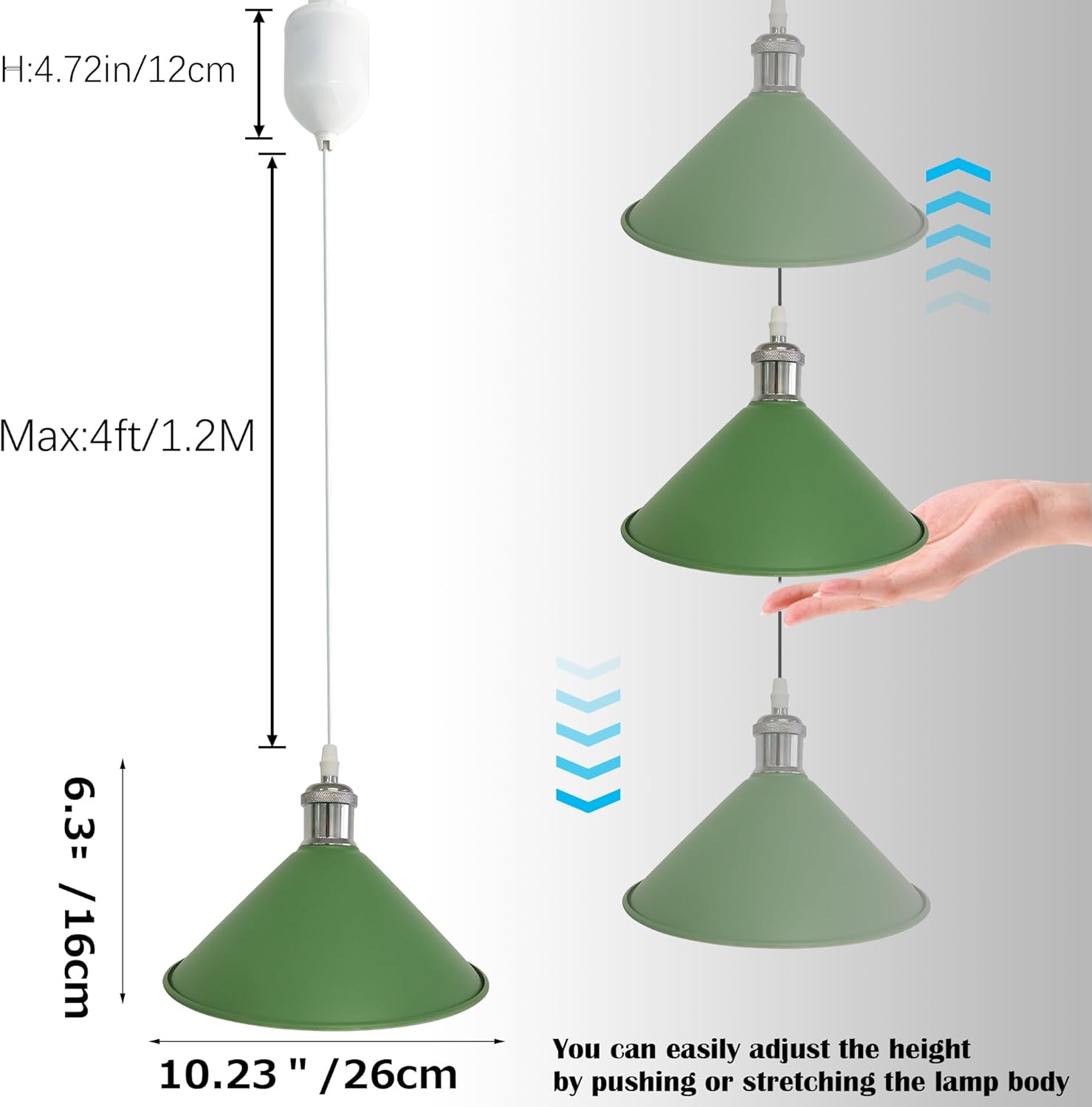 Specifications: Lamp size: φ10.23″/26cm, height:6.3in/16cm The telescopic length is about 2in/5cm~48in/122cm Track connector type: H-type (3 point contact system)t Bulb Type: E26, 40W MAX (Bulb Not Included ) You can install the type of bulb you like according to the needs of the ambient atmosphere. Package:3* Halo Track Pendant lights Features: 1.Dimmable There is no switch on the lamp body. You can control the light with your wall switch or dimmer(dimmerable bulb). 2.Unique This is a beautiful lamp.Iron Stoving Varnish Finished,resistance to corrosion and more durability. You can always find the right hanging length for your needs based on your ceiling height, because your track light comes with a built-in automatic cable tidy that adjusts the length of the wire. You can freely set the height according to your furniture position. Now, it is time to have your pendant Light to spice up your spaces,the warm desided pendant light will adding warm and has a relaxed feel feeling to you. 3.Customizable Whether you are installing an Halo Type,Juno Type or L-Type track, you can find the track adapter you want here because we provide customized services for the track adapter. Kindly Notice Any cooperation or bulk order are welcomed. Let's know your ideas.
