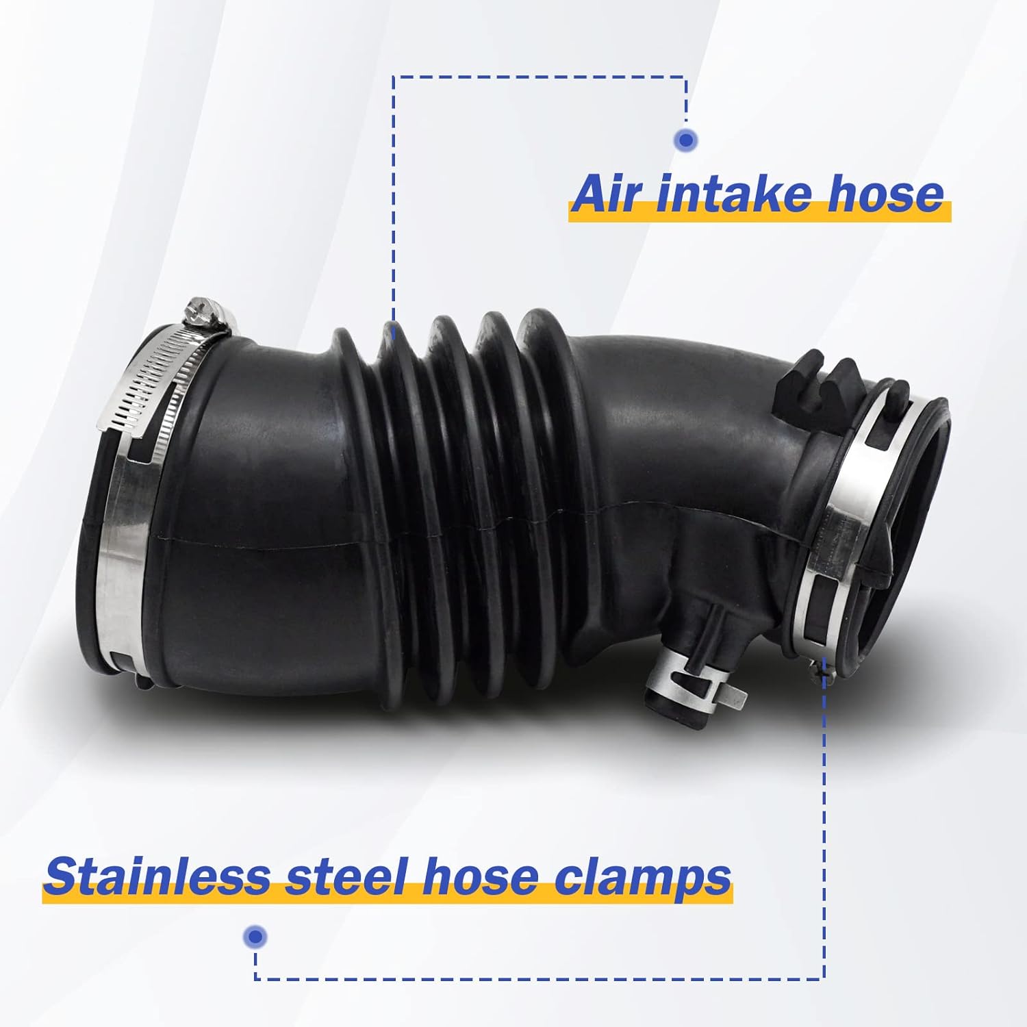 ✔Function: This engine air intake hose was designed as a direct replacement for the original equipment intake hose of the car, connects the air filter box and the intake manifold, the main function of the air hose is to feed cool ambient air from the external environment, typically through air box channels from the front grill into the engine throttle body or turbocharger, through a vacuum.