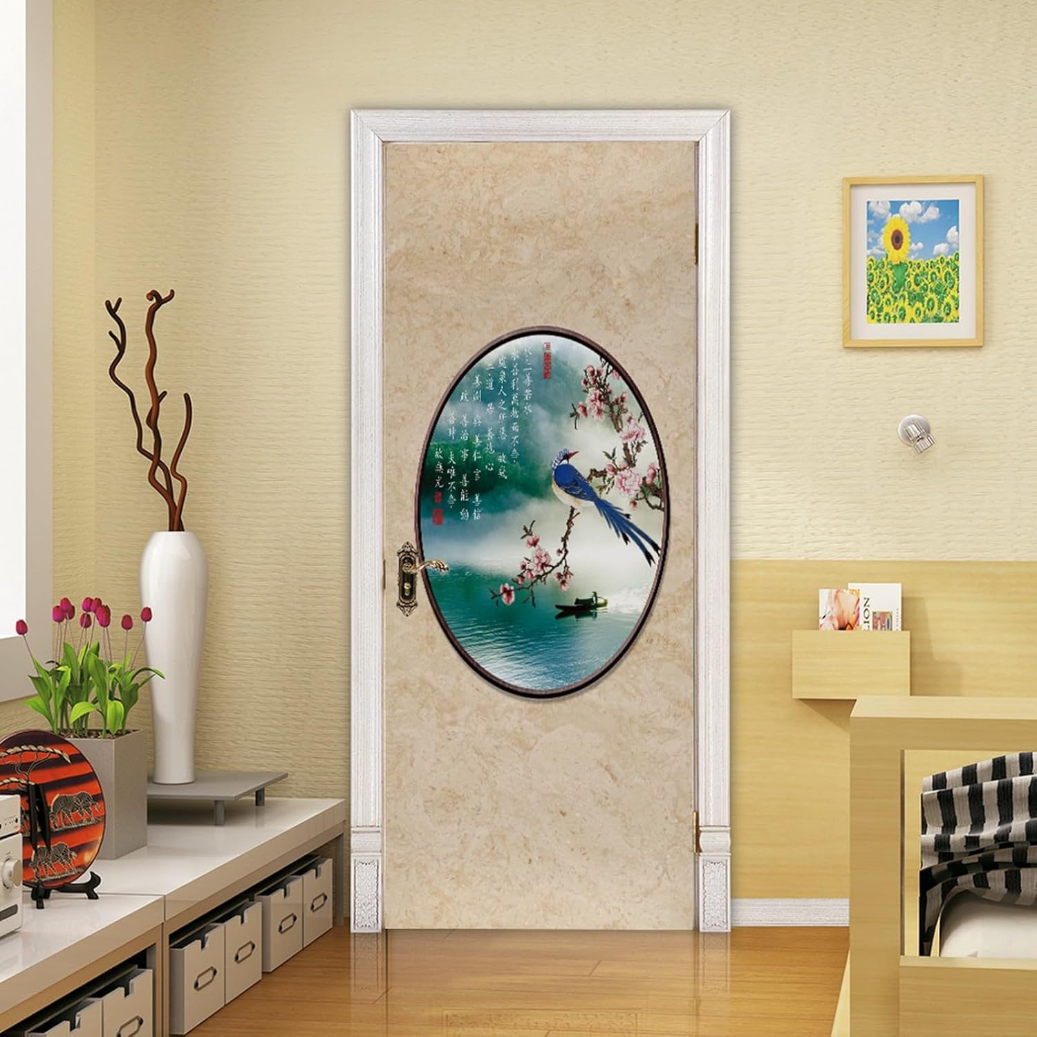 Instructions:1. Clean the surface: ensure the surface is smooth, don't stick on uneven or rough surfaces.2. Stick according to the picture or DIY in your own way3. Peel off the paper and stick the decals on the wall, pave from the middle to left and right.
