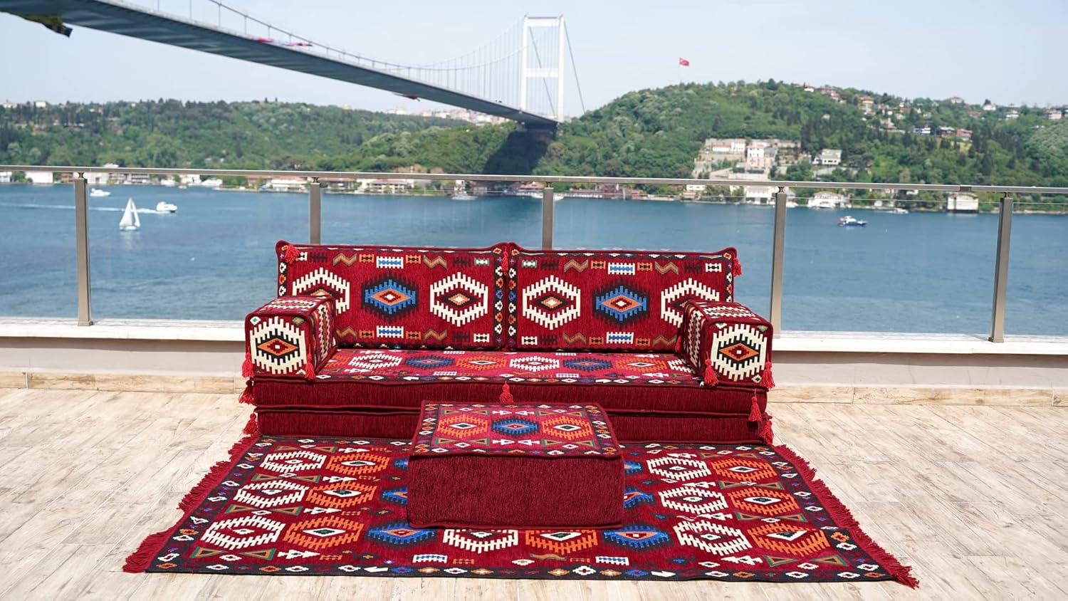 You will receive products in the variant you selected from the listing page. This sofa set comes in 10 separate pieces. If you choose 'Sofa Full Set / 4'' Thickness' you will get these: -1 Floor Seating Cushion (190 x 70 x 10 cm / 75 x 27 x 4 inch) -2 Backrest Pillows (90 x 40 x 10 cm / 35 x 16 x 4 inch) -2 Armrest Pillows (50 x 20 x 20 cm / 20 x 8 x 8 inch) -1 Matching Rug (120cm x 180cm / 47 x 71 inch) -1 Ottoman Couch (60 x 60 x 20 cm / 23 x 23 x 8 inch) -3 Pouff Pillows (70 x 50 / 27 x 20 inch) * The floor sofas are not freestanding, they need to lean against a wall or something hard behind * We can customize this product upon your request * All covers include their foam filling inserts * All covers are zippered * Beautiful texture and soft to touch * Comfortable to sit or sleep on * Top-quality finish and workmanship * Excellent for homes, offices, hotels, cafeterias, etc. * Machine washable