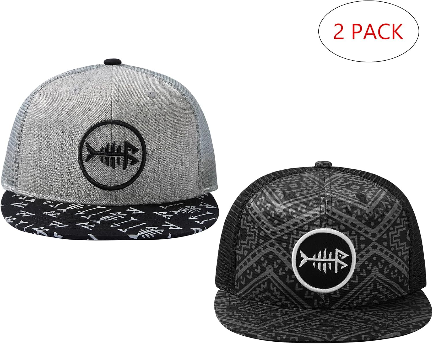 BASSDASH 2 Pack Flat Brim Trucker Cap Adjustable Snapback Hat Mesh Back for Men Women Fishing Hunting