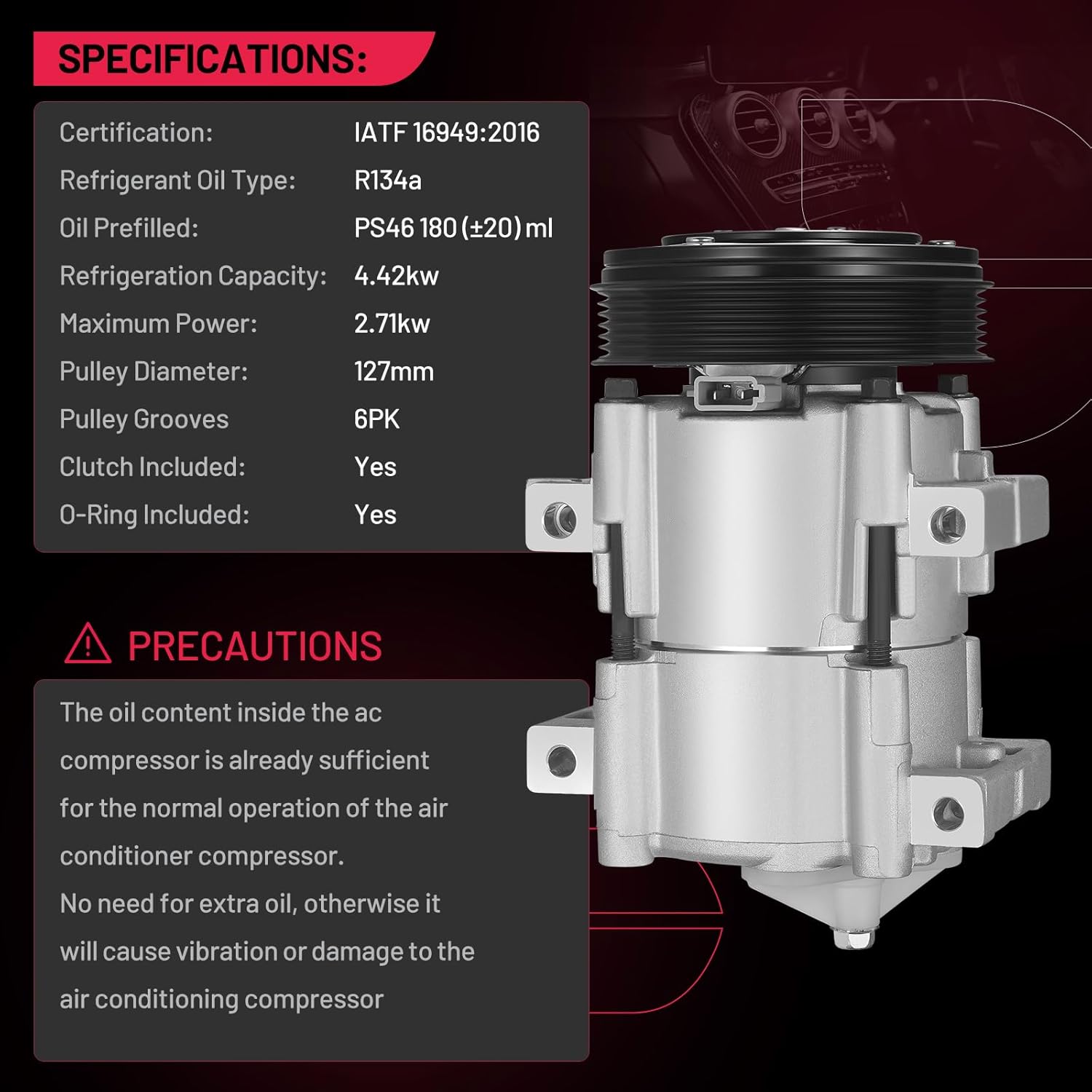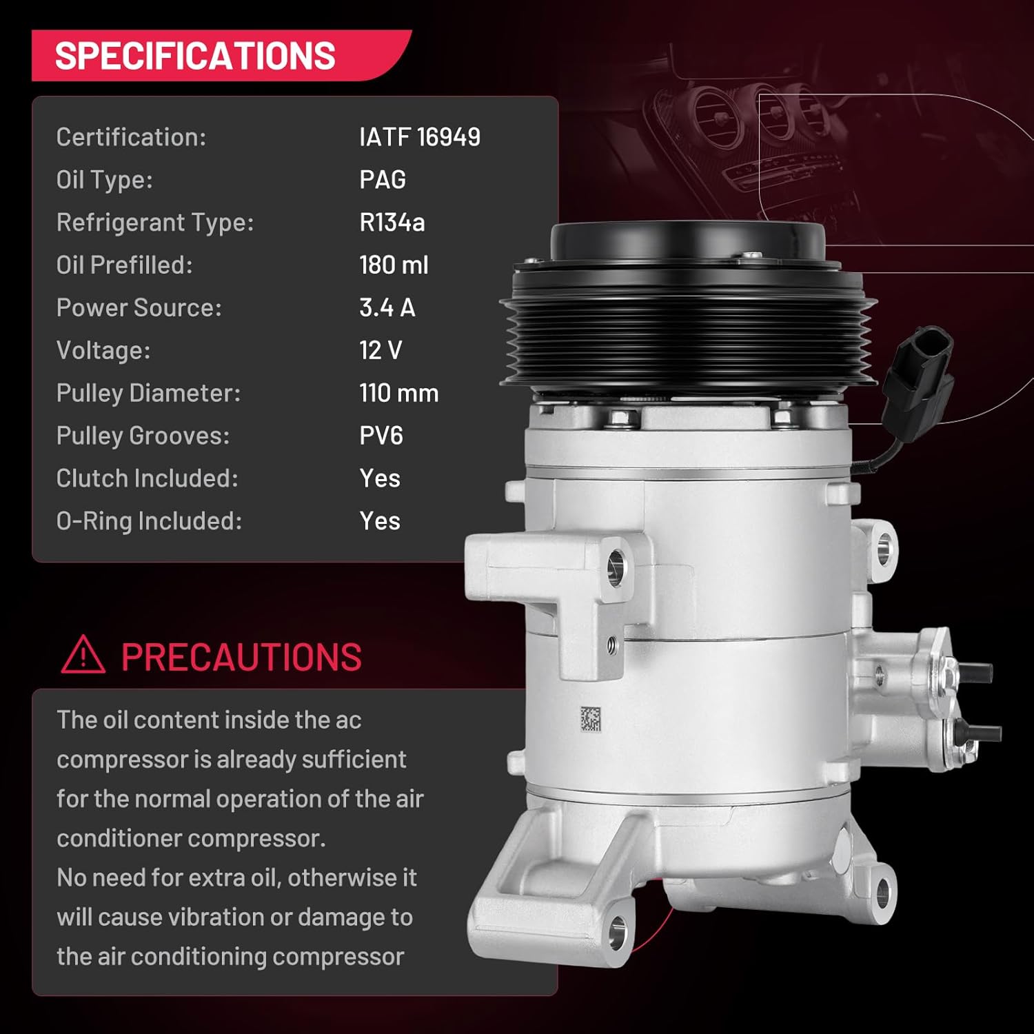 | Included Components | 1 x Air Conditioning Compressors, User Manual |