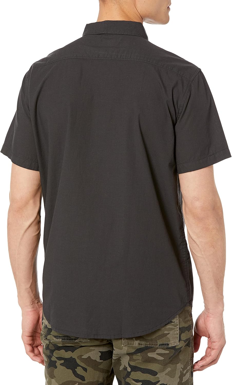 Short sleeve printed woven top with mechanical stretch. Features include seasonal minimark print, chest pocket and button down collar.