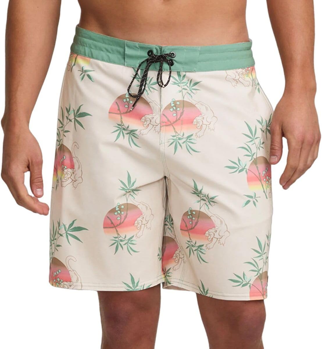This Sundays printed board short will take your curated style to a new level with a 4 way pro stretch performance fabric. Allover print design, patch pocket with Velcro closure at back right. Micro repel coating. 19 inch mid length.