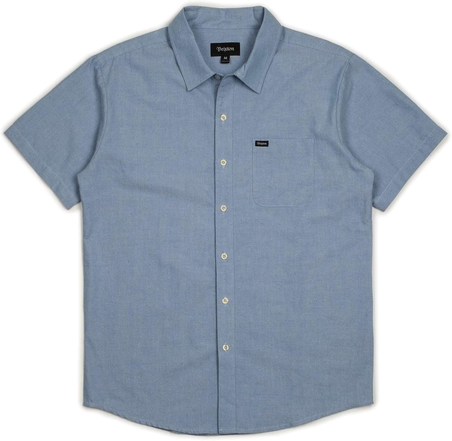 The charter oxford is a standard-fit short-sleeve button shirt made in a 4-o 100 percent cotton oxford fabric. It features a single chest pocket, a standard shirttail hem, and a custom Brixton woven label at pocket.