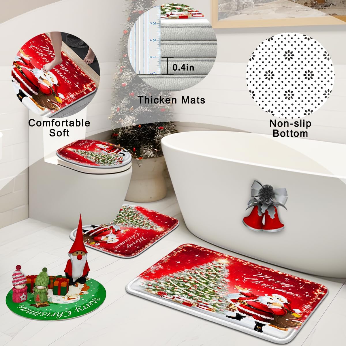 | Included Components | shower curtain, bath mat, U-shaped rug, toilet lid cover, hooks |