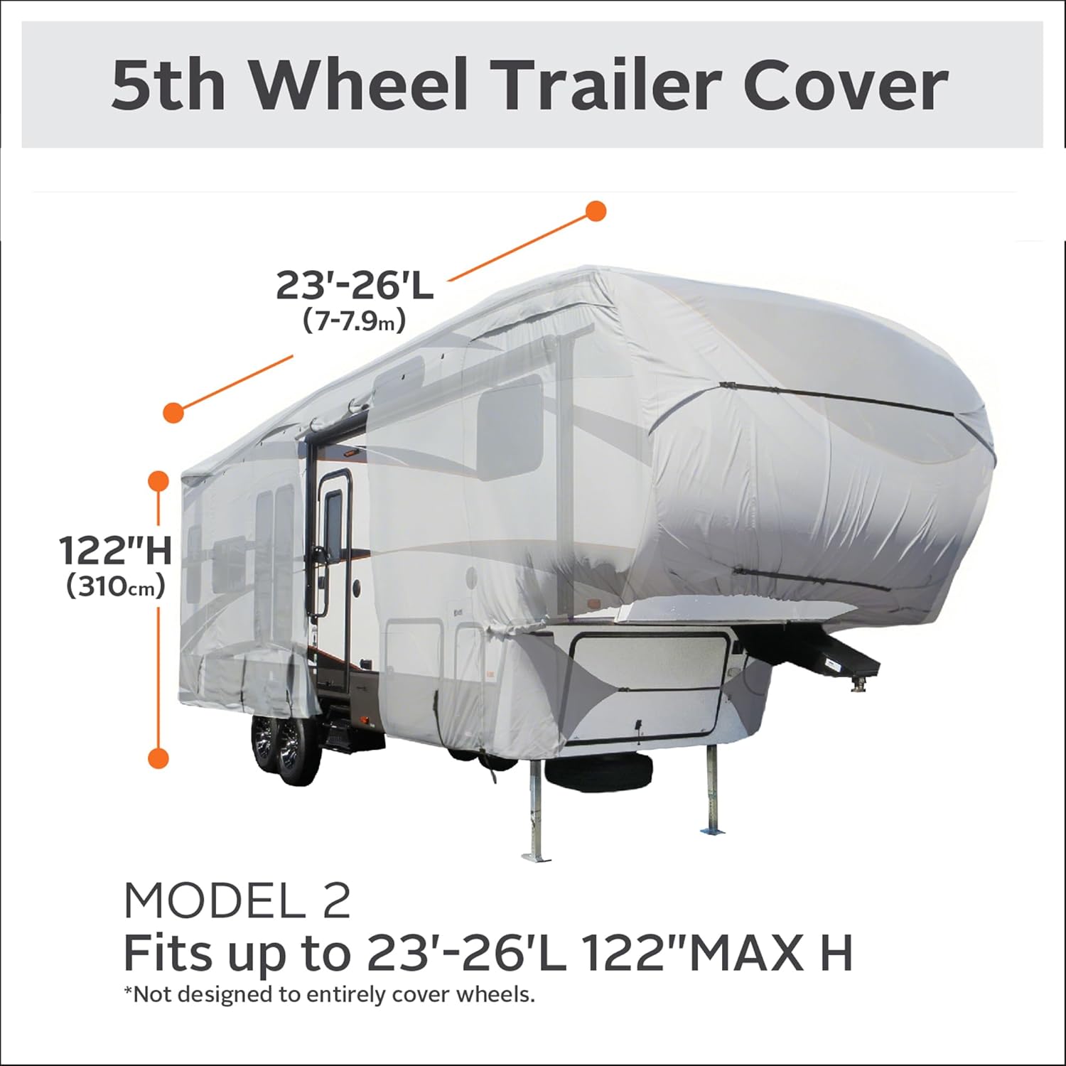 • 5th Wheel Cover: Fits 5th wheels 41' - 44' long, 140" high from ground to roof