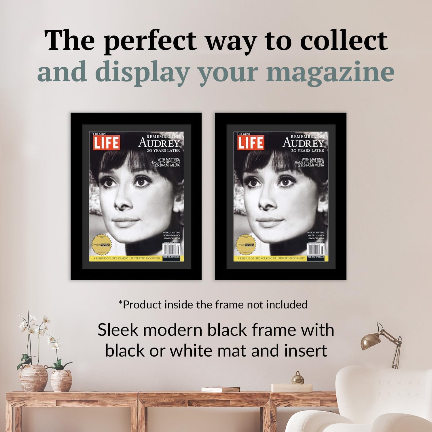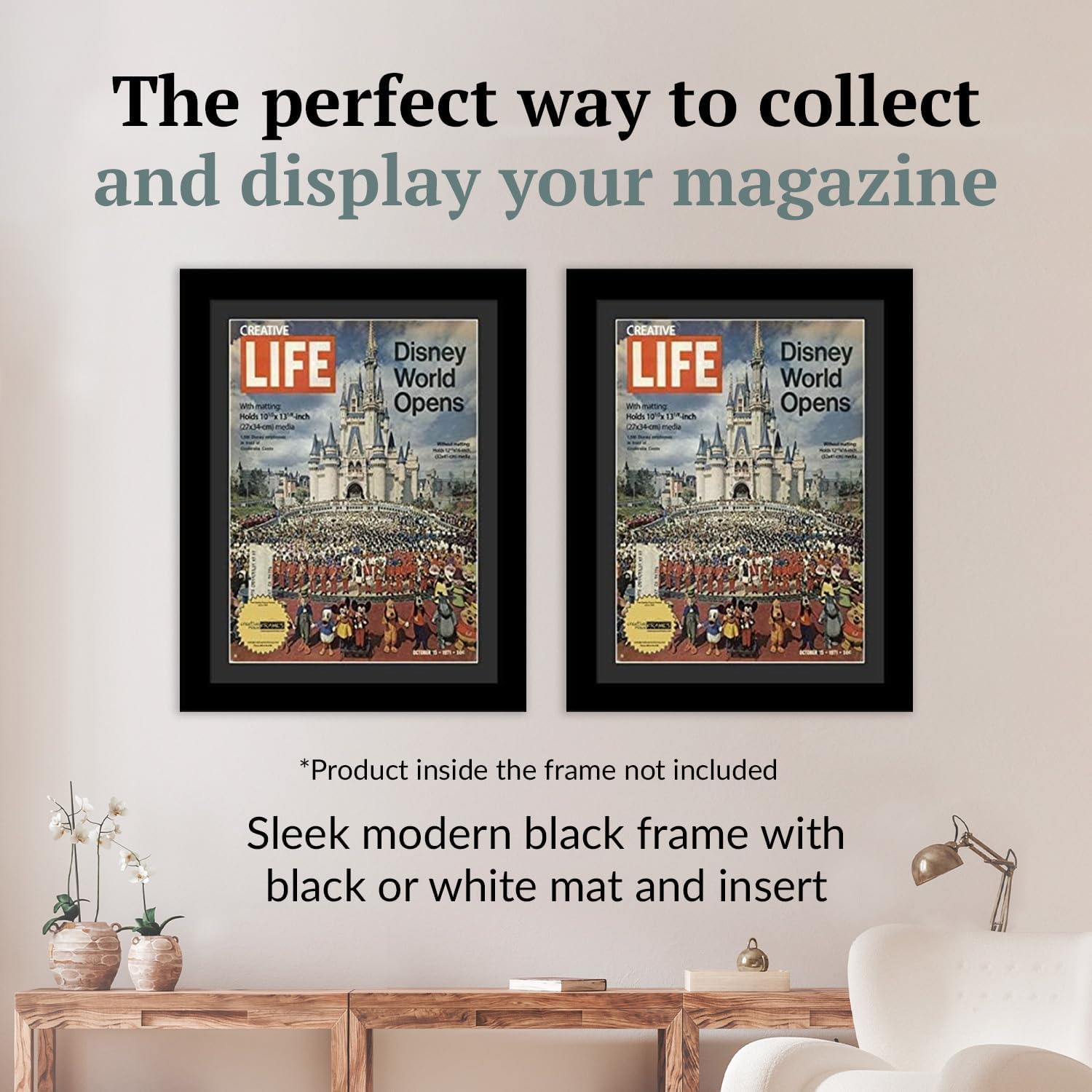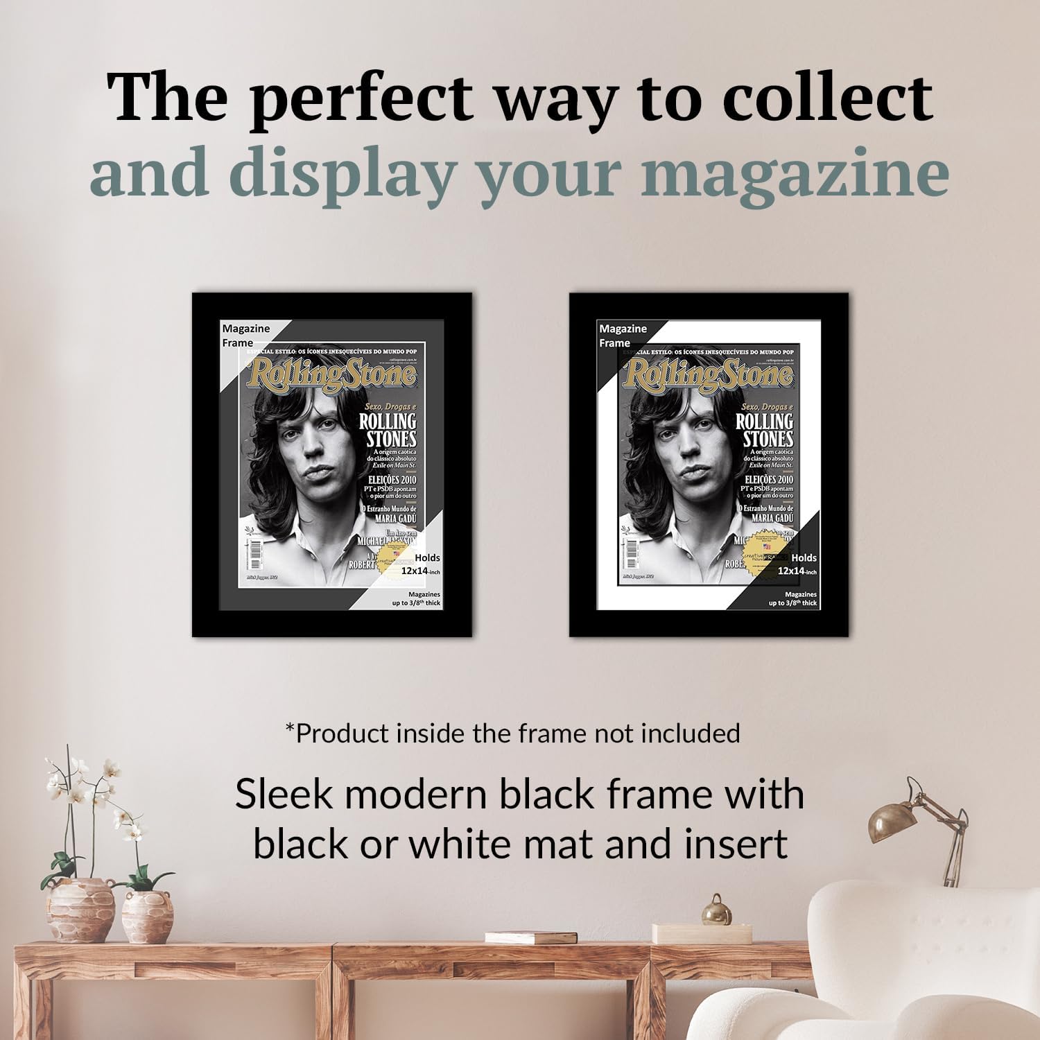 • Elevate Your Wall Decor: Transform your magazine’s wall display with our Magazine Frame's black frame & black or white mat insert, adding a touch of modern sophistication to your space; Measure your magazines & choose from a range of available sizes to showcase your collection, with each frame capable of holding media up to 1/4" thick