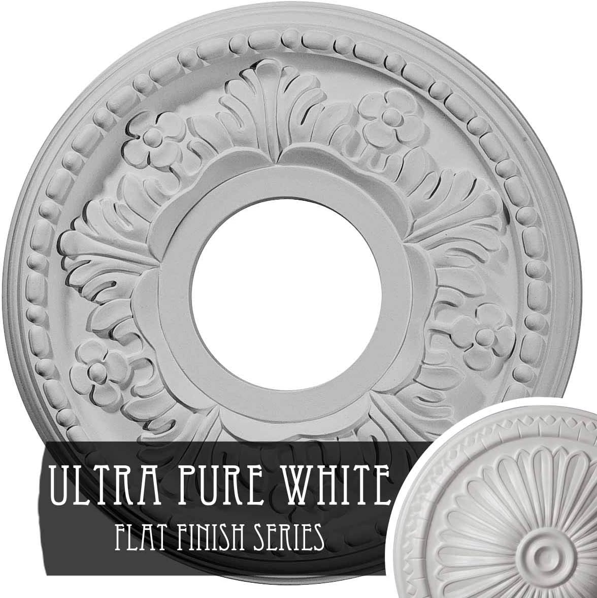 Our ceiling medallion collections are modeled after original historical patterns and designs. Our artisans then hand carve an original piece. Being hand carved each piece is richly detailed with deep relief, sharp lines, and a truly unique touch. That master piece is then used to create a mould master. Once the mould master is created we use our high density urethane foam to form each medallion. The finished look is a beautifully detailed, light weight, solid construction, focal piece. The resemblance to original plaster medallions is achieved only by using our high density urethane and not vacuum formed, "plastic" type medallions. - Medallions can be cut using standard woodworking tools to add a hole for electrical or a ceiling fan canopy. - Medallions are light weight for easy installation. - They are fully primed and ready for your paint. If you have any questions feel free to ask. These are in stock and available for immediate shipment.