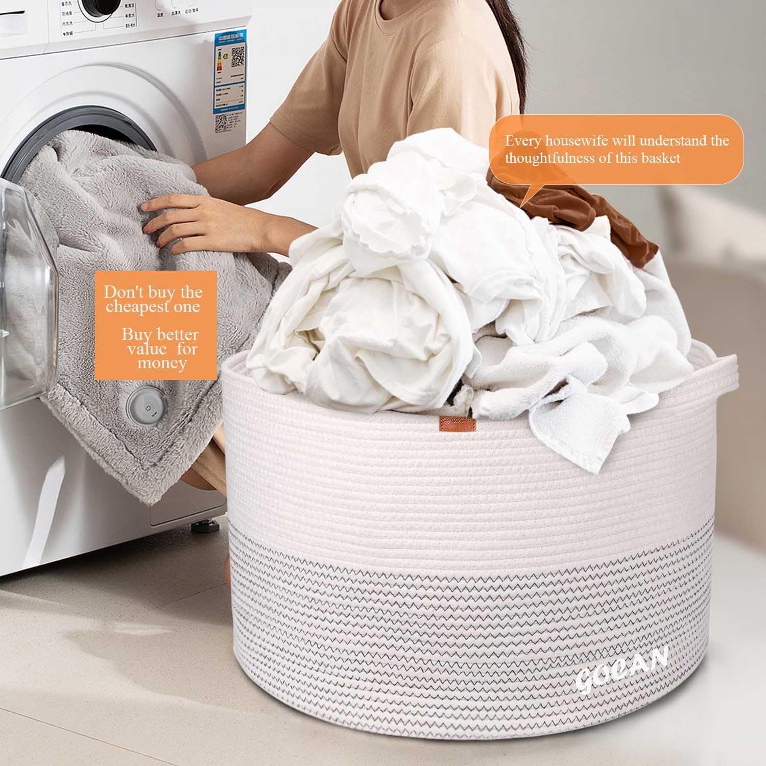 • ✅Stylish and neutral color design: With this fashionable style and neutral color, this handmade home cotton storage basket can match any color and design of your home scheme.