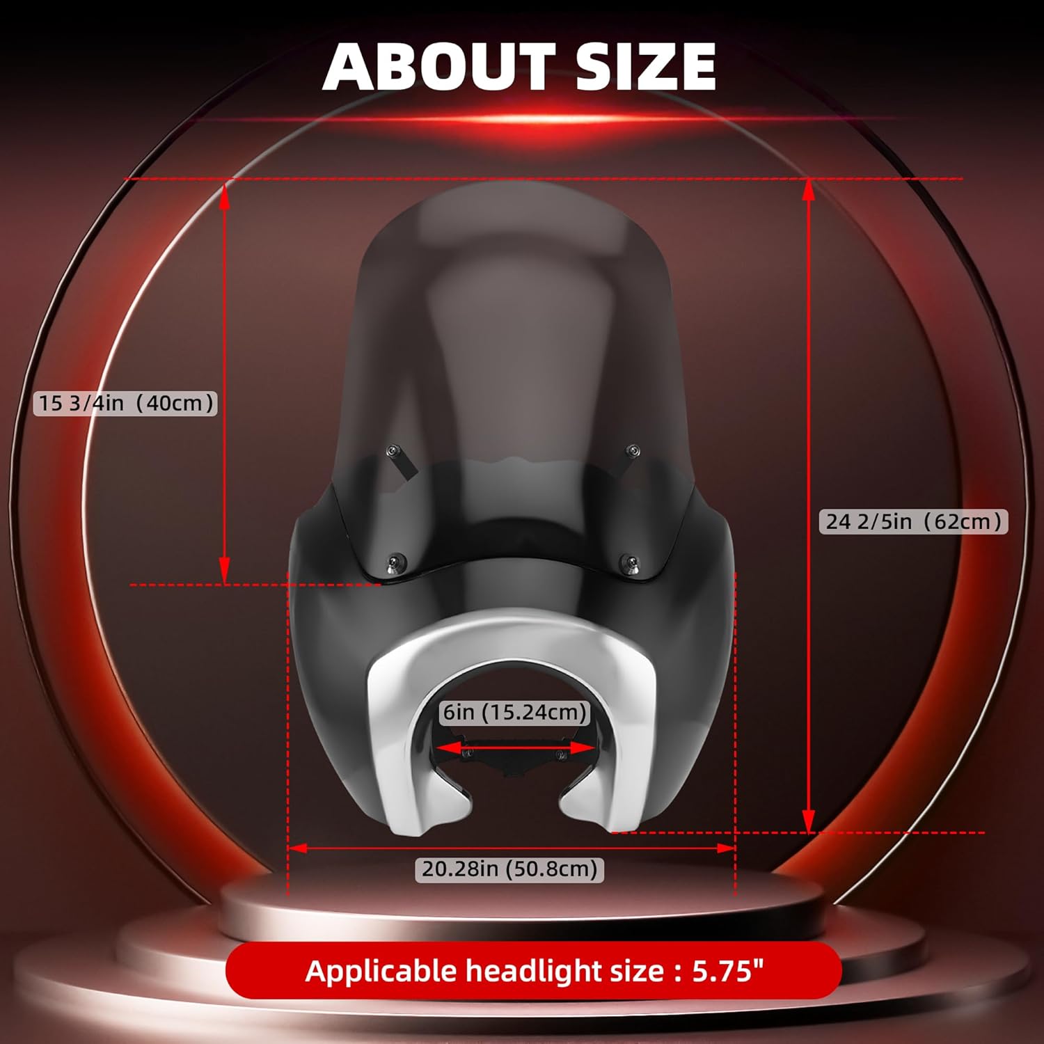 Product Name: FATECIM Motorcycle Headlight Fairing with 15'' Blackout Windshield Fits For Harley Dyna FXDXT T-Sport Material: ABS + PC Size: Windshield height 15 3/4", The entire width 20", The entire height 24 2/5" Headlight: 5 3/4" cut out Features: 1. Retro style for old school, nice appearance 2. High quality ABS 3. Come with mounting hardware for easy installation 4. Minimalist style and maximum function, that is the FATECIM Fairing. When looking for the perfect Fairing for your Harley Davidson Dyna or Sportster, the FATECIM is the answer. A stylish quarter fairing, the FATECIM provides the style you want and torso protection that you need for extended mile rides. The FATECIM comes in a Gloss black Class-A finish which can also be easily painted. 5. FATECIM Fairing is unitized quarter fairing with a matte black finish inside. Class A gloss black finish outside. Smoked windscreen. Trigger Lock Mounting System - on and off without tools. Fitment: 2006-2017 HD DYNA: Direct Fit: Mounts to bottom triple tree w/ riser bolts and bottom mount headlight. 1999-2005 Harley Dyna with bottom mount headlight (Professional installation recommended). 2000-2003 T-Sport (Direct for FXDXT T-sport only). 1987-1999 FXR (with Riser/T-bar setup, rewiring headlight bucket relocation to bottom-mount headlight. Will Not Fit: This WILL NOT mount on Dyna models with a cast triple-tree riser setup. You would need new risers/bars to mount. Solid risers and bushings should be used at the time of install. We recommend that installation be done by a professional motorcycle shop. 1987-1999 FXR (with Riser/T-bar setup, rewiring headlight bucket relocation to bottom-mount headlight.