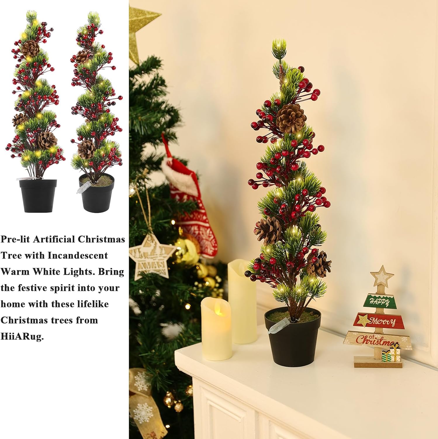 | Included Components | 2 x Mini Christmas Trees, pine cones, red berries, linen base |