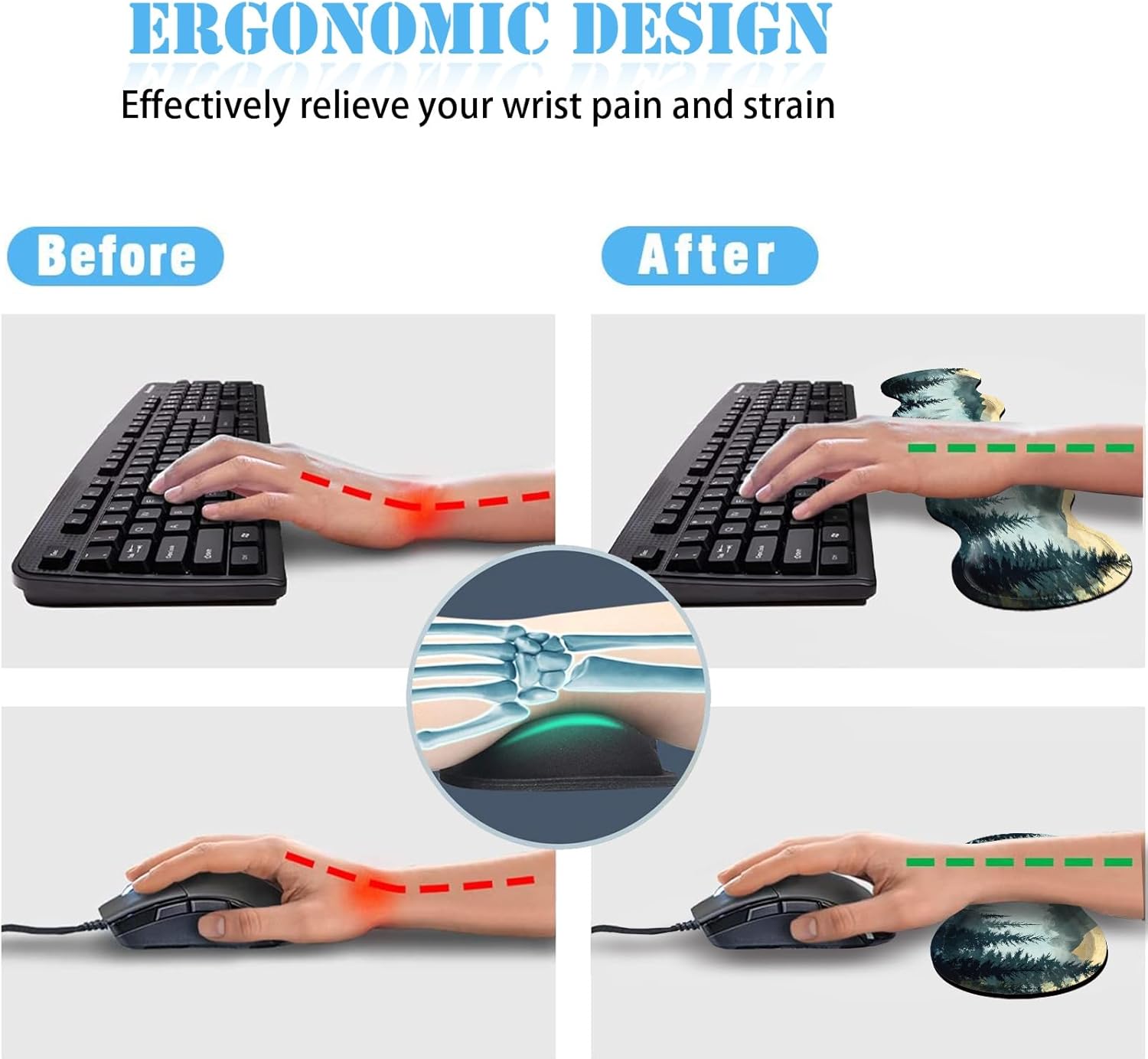 • 【Ergonomic Mouse Pad:】Designed with memory foam and soft, Smooth material, The pads are lightweight and comfortable for your daily work life. This gaming mouse pad with wrist support is ergonomically shaped to minimize wrist stress and fatigue. The soft wrist rest keeps hands level with keyboard and mouse, Improves hand and wrist posture, Avoids joint and wrist problems, and relieves pressure on elbows and shoulders.