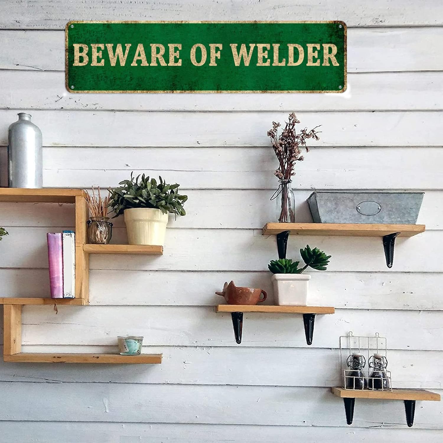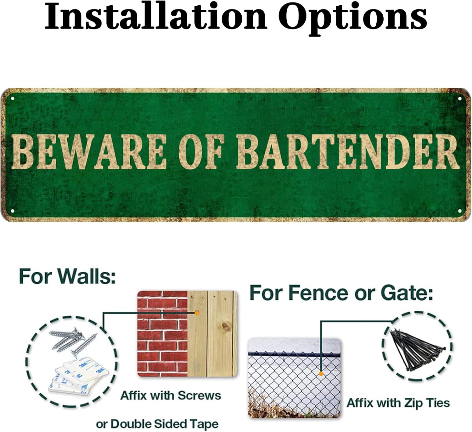 Our metal decorative signs are made of high quality fade resistant tin that will last for many years. Our aluminum sheets are lightweight, strong and durable, made from recyclable materials. This tin sign vintage decorative painting is made with folded edges for safety and stability.Creative, minimal and stylish retro design. With a variety of styles to choose from, from rustic to modern, there is sure to be something for everyone. This unique size makes the text stand out and easy to understand without creating an objectionable environment!Perfect for home decor and wall decor. The classic tin sign is an ideal wall decoration for your house, door, bedroom, bathroom, dining room, laundry room, garden, office, bar, dorm, cafe, street, billiard room, hotel, cave, garage or club, etc. Simple and stylish atmosphere.These fun, retro and stylish tin signs are the perfect gift for almost any occasion, a truly unique gift filled with your true love that will bring a smile to everyone.NOTE: The metallic paint looks rusty, it is printed, not really rusted. This is a post made of tinplate. Colors may vary slightly due to lighting effects.For more information on our metal tin signs, browse our store! !! Hope you have a pleasant shopping experience here! !!Thank you for visiting our store!