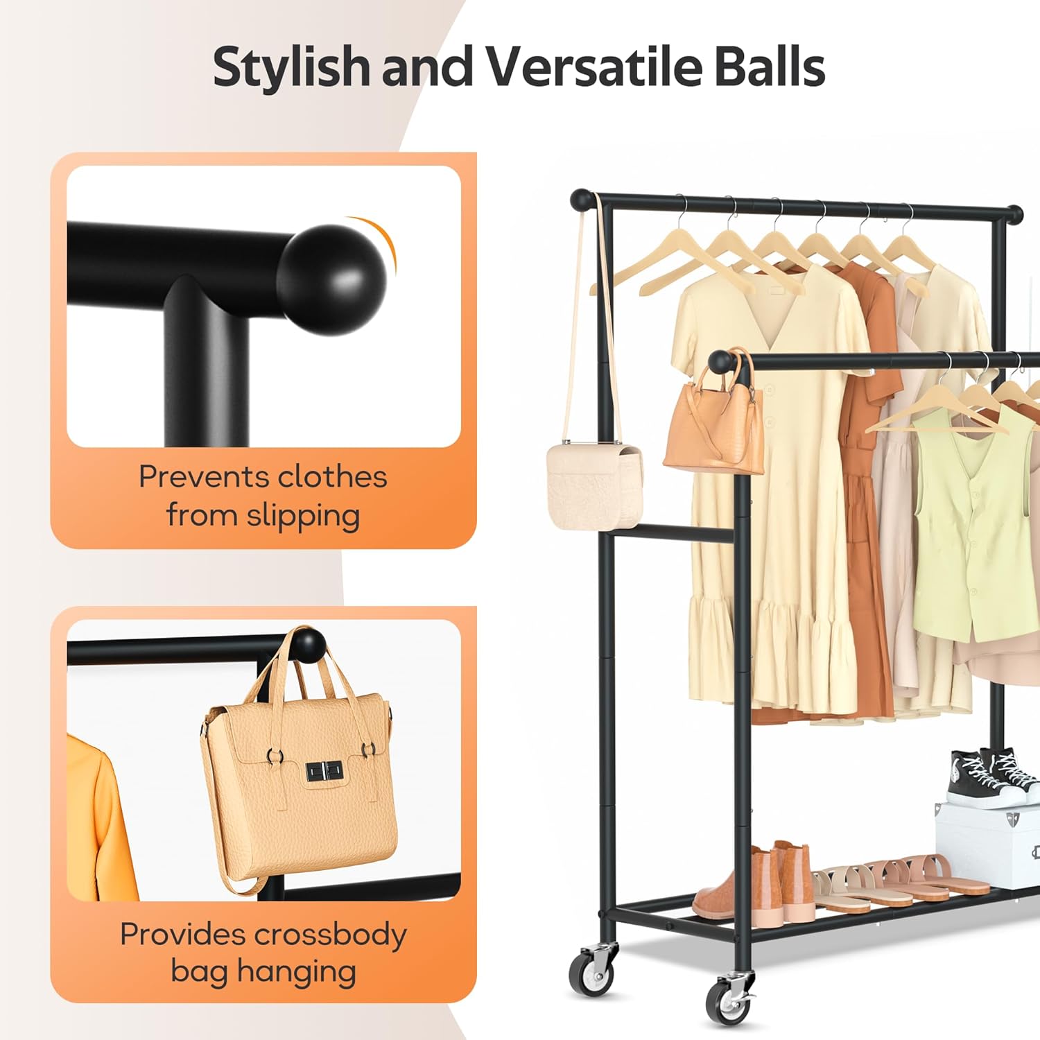 • Stylish Ball: The balls on both sides prevent clothes from falling out while providing extra space for bags.If you're looking for a garment rack for hanging clothes that's both elegant and functional, this is the one for you