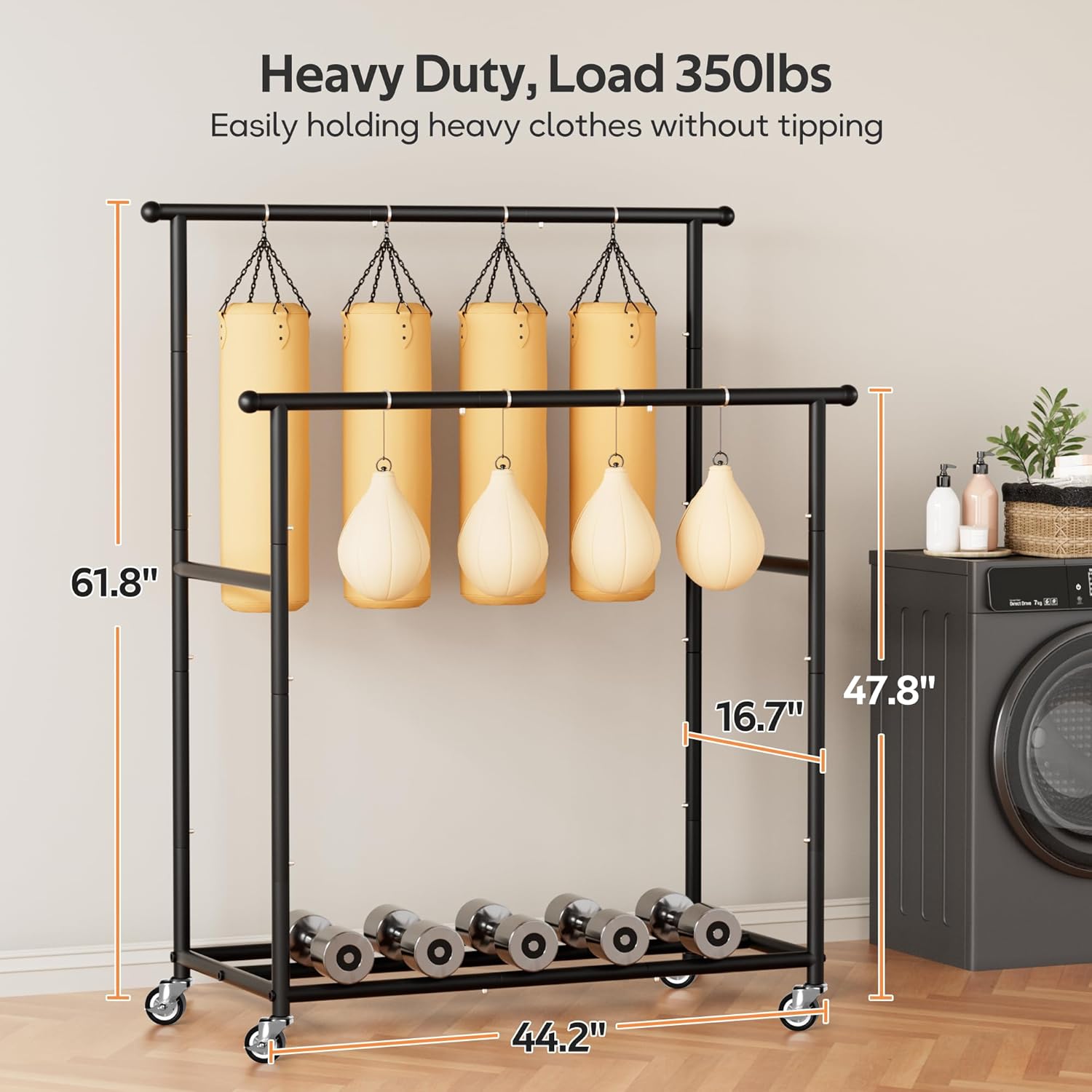 • Heavy Duty: Made of thickened, high-quality metal. The closet racks for hanging clothes can hold up to 350 lbs. Easily accommodating heavy winter coats and boots without tipping or warping