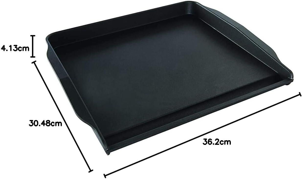 This single burner griddle has exceptional heat retention capability ensuring every dish you prepare on this griddle, from pancakes to bacon, yields outstanding results consistently. Furthermore, the nonstick coating facilitates effortless cleaning, while the distinctive back splatter design serves to safeguard your countertops or stovetops against untidy grease and spills. Front grease well catches fats and juices. Pan measures 12 x 14.2 x 1.7 inches on the exterior and the interior cooking surface measures 11.5 x 12.7 x 1.2 inches. Made of cast aluminum and heat safe up to 400 degrees Fahrenheit. For use on gas, electric and ceramic stovetops. Proudly made in the USA by Nordic Ware