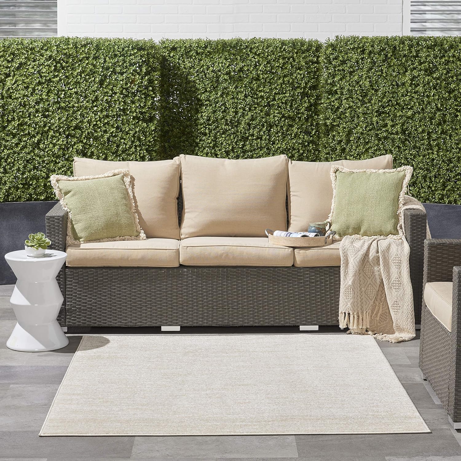 | Product Care Instructions | Professional cleaning recommended, Rinse with hose, air-dry both sides. To extend the life of your outdoor rug, bring indoors during extreme weather., Vacuum regularly (no beater bar) |