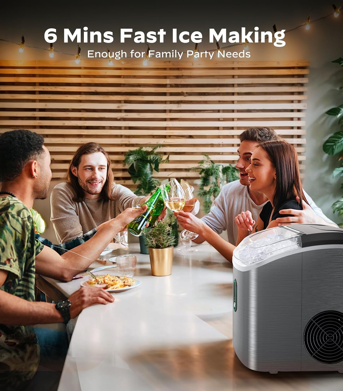 • Delicious Chewable Nugget Ice: Enjoy the delightful crunch of our nugget ice maker, which produces irresistibly chewable nugget ice, ideal for smoothies, cocktails, sodas, and more. Unlike traditional ice cubes, our nugget ice is made from compacted, layered ice flakes, offering a superior texture and mouthfeel that enhances your favorite beverages