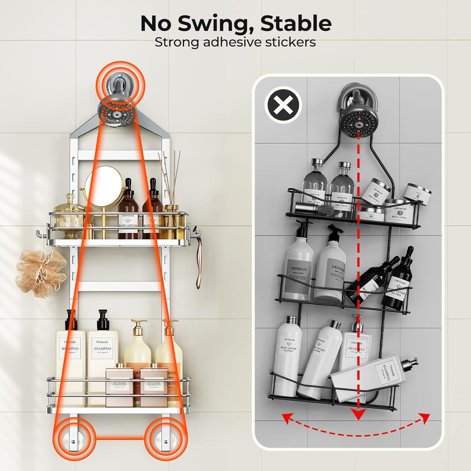 | Included Components | Adhesive stickers, All installation accessories (including spare screws), Extra wall bracket for mounting your shower holder, Hanging Shower Shelves, Hooks |