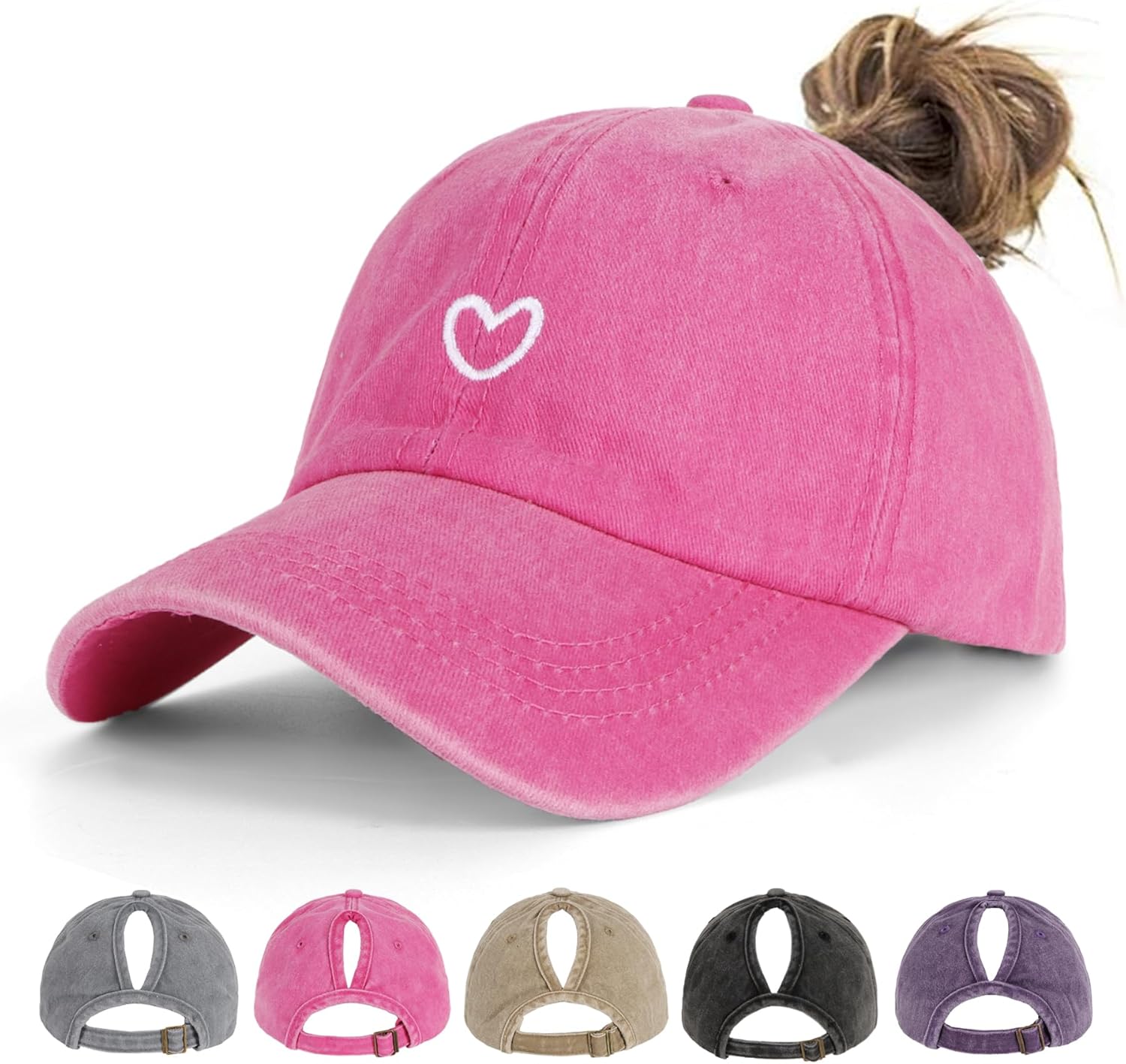 Our HeyCaps Women baseball cap is made of cotton, soft and light. The letter embroidery design complements your daily outfit, and a variety of colours and breathable holes will keep you stylish and not stuffy in the summer! Features: Material: 100% premium cotton. Dimensions: (with adjustable shoulder straps) Hat brim: About 7CM/2.75". Suitable for head circumference:54-60cm. One size fits most. Care Guide: Hand wash, air dry. Do not use bleach. Do not iron.