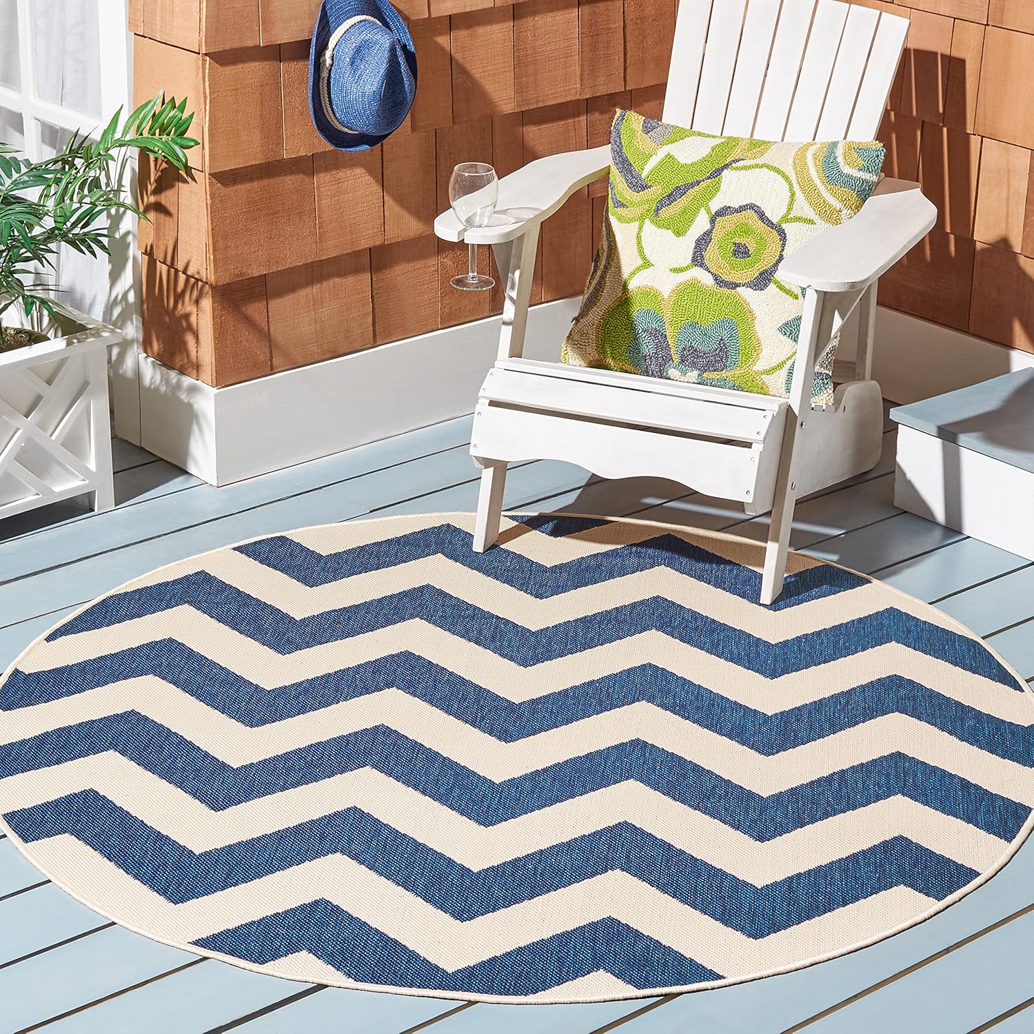 Safavieh's Courtyard Collection is inspired by timeless designs crafted with the softest polypropylene available. This rug is crafted using a power-loomed construction and features a main accent color of navy. Perfect for any backyard, patio, deck or poolside, this rug will instantly turn your outdoor area into a resort-style entertaining space. Finely crafted for seasons in the sun and years of open-air gatherings, the Courtyard rug instantly elevates any interior or exterior décor to a space of visual inspiration. More than a decorative enhancement, this rug is both and -ant to ensure carefree maintenance. With its style, practicality, and transitional decorating options, this rug extends an open invitation to gather and may just spark impromptu parties. Primary Color: NavyPile Height: 0.25 inches Material: Polypropylene Style: Contemporary Construction: Power-loomed Rug Type: Indoor/Outdoor Feature: Latex Free Rug Dimensions: 2'3" x 14'