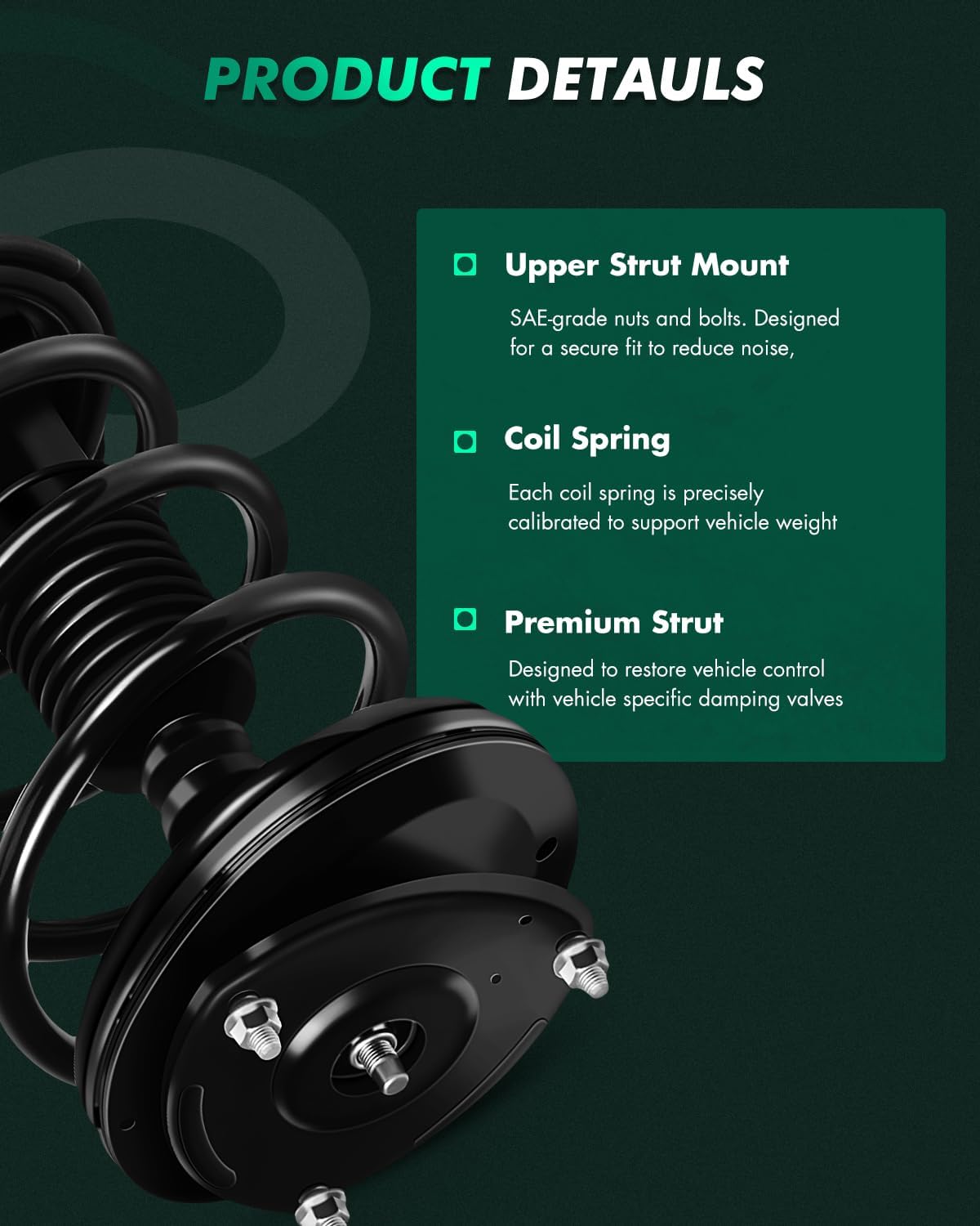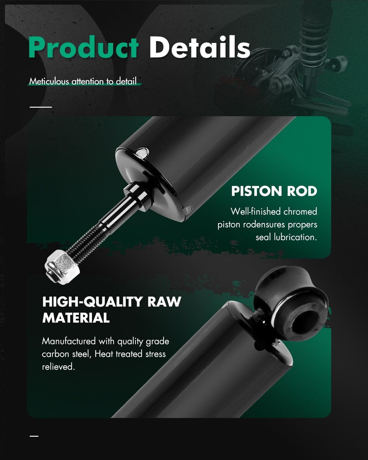 | Special Features | Absorb or dampen the compression and rebound of the springs and suspension, Easy to install, Improve stability, OEM quality, avoid oil leakage and solve abnormal noise |