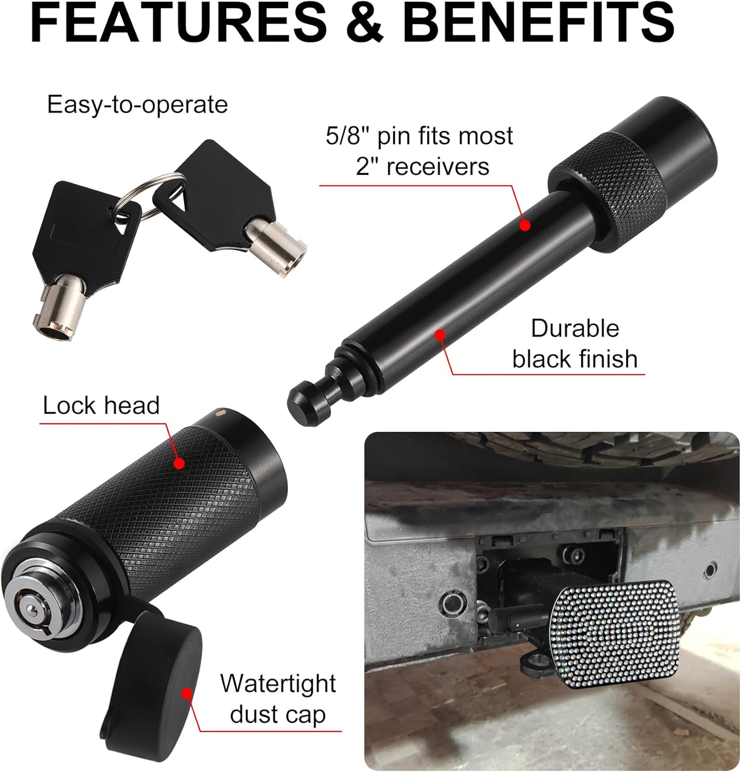 The trailer hitch cover is made of solid carbon steel & sturdy aluminum, the surface is treated with electroplating and coating processes to effectively prevent wear, fading, and rust.