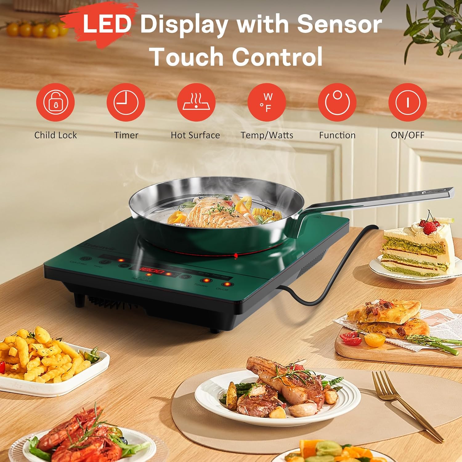 Traenvir one burner electric cooktop, sensor touch control, 110-120V Plug in. Single Burner Electric Cooktop Description: Voltage:110~120V Power: 1800W Product Size (L*W*H): 11 in (280mm)x 14.2 in (360mm)x 2.4 in(60mm) Weight: 7 lbs One Burner Electric Stovetop Features: 8 Cooking Modes Traenvir single burner electric stove has 8 cooking modes that can be adjusted according to the ingredients, choosing the right mode ensures that the ingredients are nutritious and flavorful. Multifunctional Ceramic Cooktop Features such as child safety lock and 4-hour timer can help you cook more conveniently and ensure the safety of your home