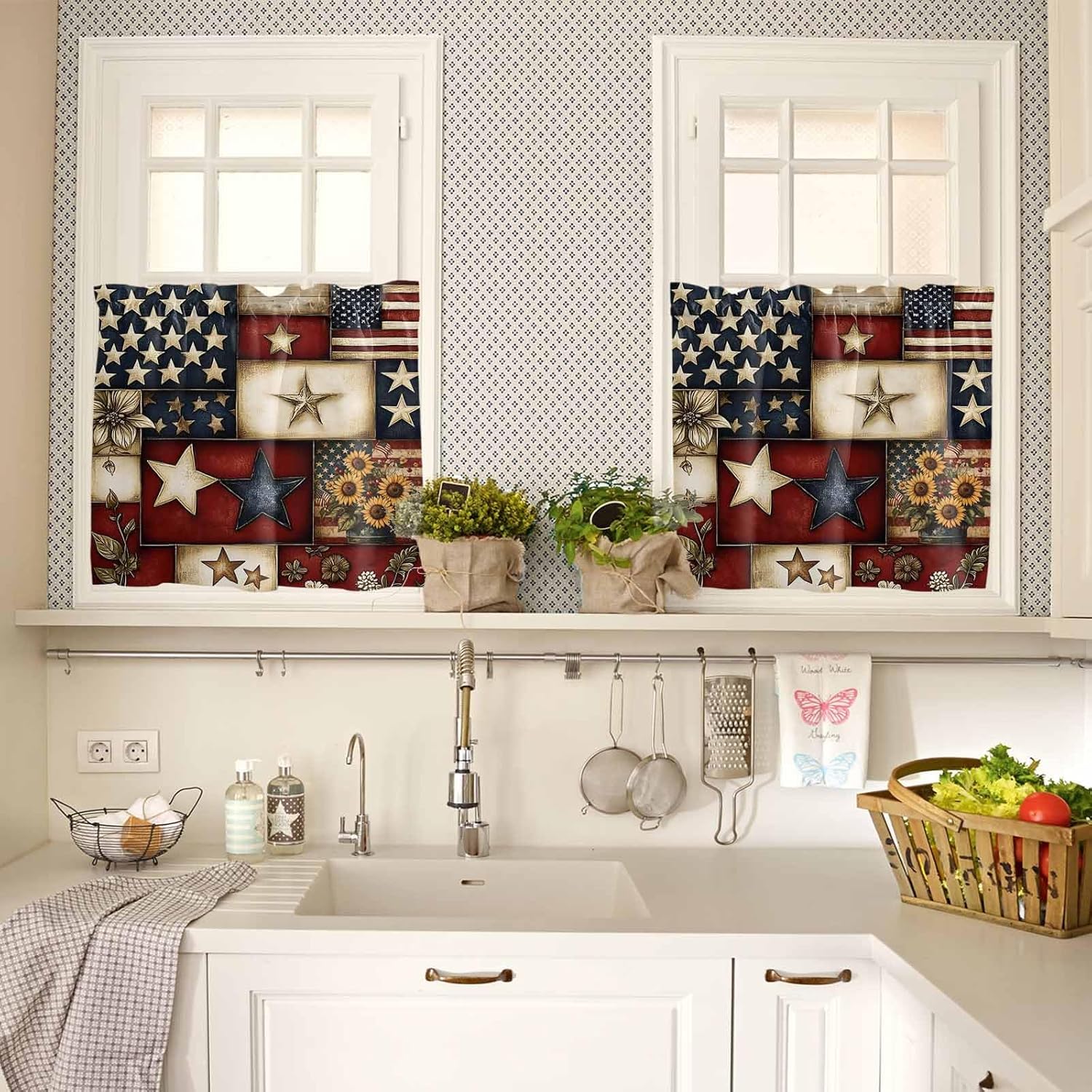 Epetloutys 3 Pcs Kitchen Curtain Set with Tier and ValanceFrequently Questions Asked:What's the size of the tier and valance setPackage Including: 1 pcs Curtain valance measures 54 W x 18 L Inches. 2 pcs tier curtains, each curtain panel measures 27.5 W x 24 L Inches(Total 55 W x 24 L)/ each curtain panel measures 27.5 W x 36 L Inches(Total 55 W x 36 L). 3 pieces in one package.Are the curtains valance & tier total blackoutNo, they are not total blackouts, but they can block most unwanted sunlight, and protect your privacy and your furniture.Main InformationPremium Material- High quality durability polyester fabric.- Cozy, comfortable, smooth.- Long lasting and no easy to tear.Exquisite Workmanship and Header Type- The valance and tier curtain set is given to stitching ensuring there is no loose threads and uneven hems/edges.- The curtain set of valance and tier rod pocket measures 3 inch fits 1.5" straight rods in the market that slides easily onto your curtain for quick installation. There is 1" header on the top of each valance and tier kitchen curtain, which can create an elegant atmosphere, give a alive touch and add beauty to your half windows with a new look.Various Occasion DecorAn instant update to your window look, this 3-piece kitchen tier is otherworldly and matches any of your custom home styles, perfect for traditional, contemporary, glamour, shabby chic or farmhouse home decor. Perfect for kitchen, infant room, basement, bedroom, bathroom, living room, laundry room, studio and other windows. Of course, they are not just tier curtains for windows, they can also be used on closet, shelf or any places you want to put on for privacy protection.Machine Washable- Machine washable.- Tumble dry on low. - Iron at low temperature.- No bleaching.- No softener.