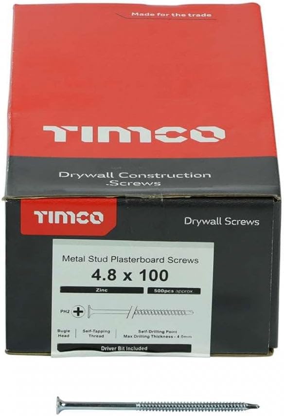 Bugle head self drilling drywall screws with zinc plating with a Phillips recess (No.2) and a maximum drilling thickness of 2.5mm. These are boxed in a quantity of five hundred and include a free driver bit, they are also available in the TIMbag