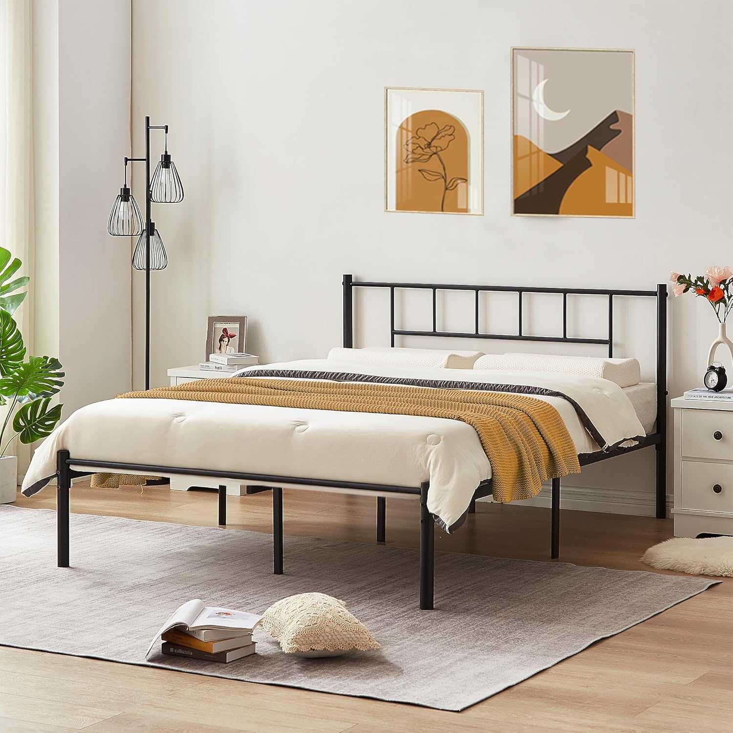 | Form Factor | Metal Platform Bed Frame with Headboard and Industrial Style |