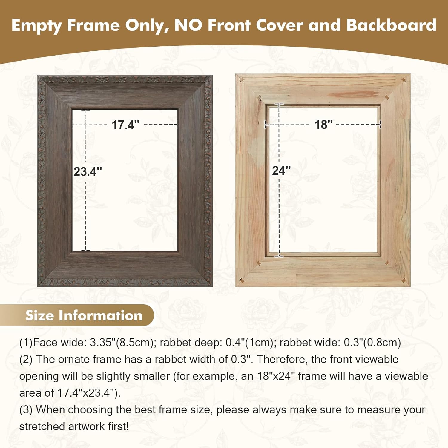 | Special Feature | Improve the look of your artwork, Shatterproof, Solid wood material, long-lasting and reusable, Vintage gold tone, sophisticated look, Weatherproof |